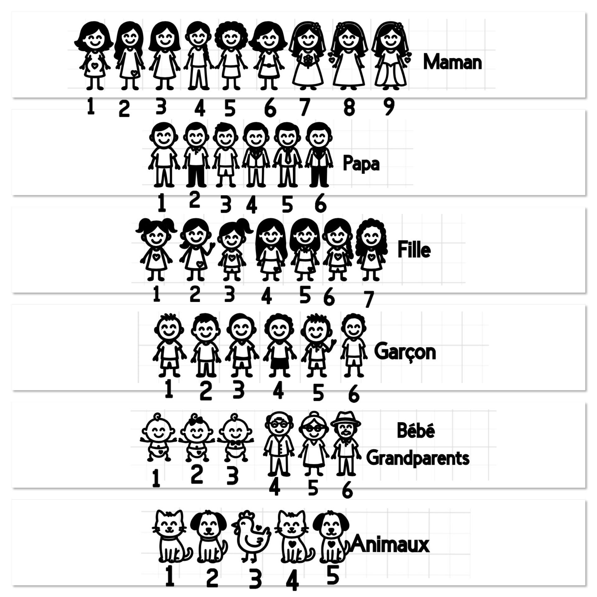S’il vous faut 2 mamans, 2 papas, 2 filles, 2 garçons ou un autre animal, inscrivez le ici, sinon inscrivez « rien »